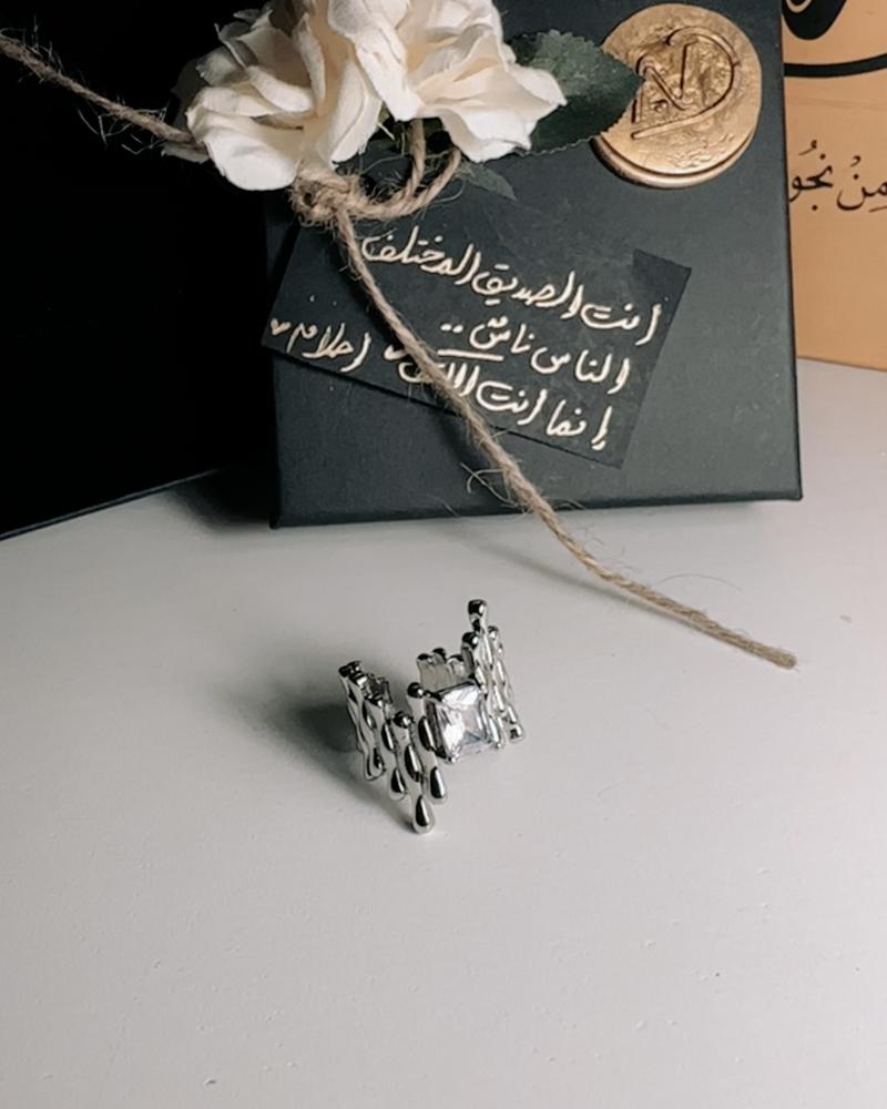 خاتم ستينلس ستيل فضي مرصع بقطعة زركون