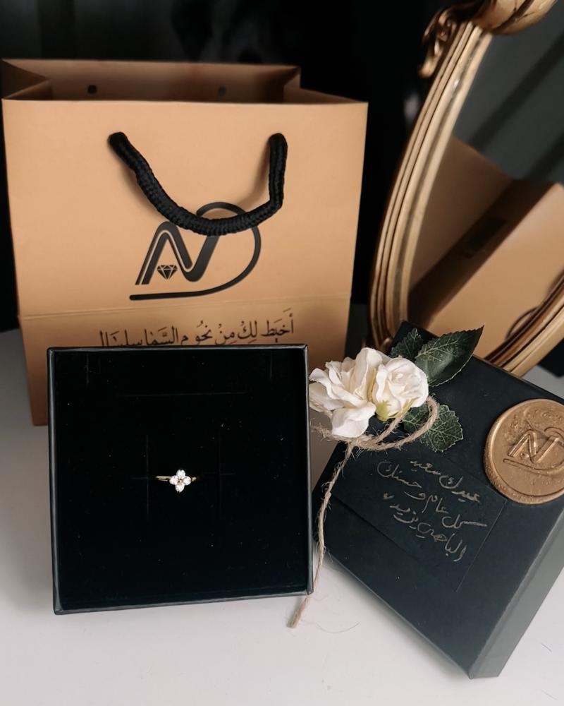 خاتم أنيق مطلي بتصميم زهرة مرصعة بزركون لامع